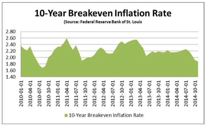 Inflation expectations appear to be well anchored, as illustrated by the 10 year breakeven inflation rate. This rate, the difference between the 10 year treasury yield and 10 year TIPS yield, suggests that the bond market expects inflation to average just 1.65% over the next 10 years. This is down from 2.6% in 2013 and well below the Feds 2% inflation target. Deflation can force central banks into ever increasing accommodative policies, including keeping interest rates lower for longer. The chart on the following page shows the 10 year breakeven rate going back to 2010.
